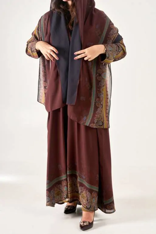 عباية جورجيت بني بنقشة راقية
